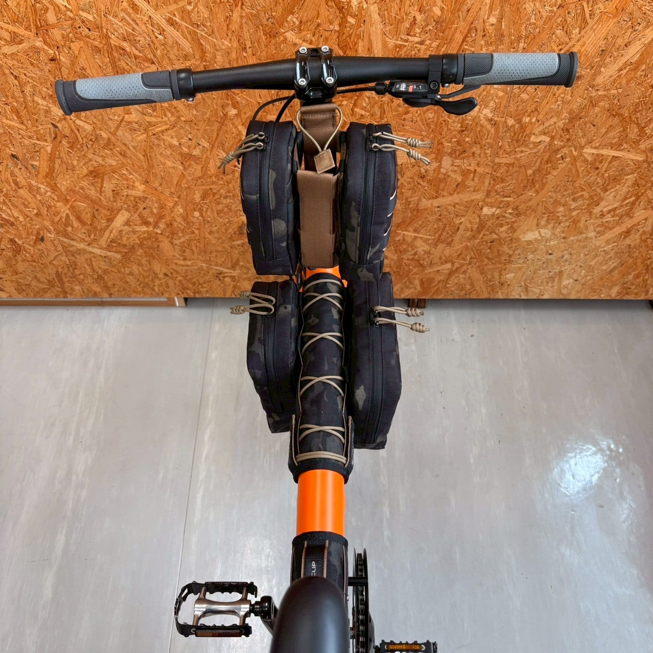 ◎Under the saddle, seat post, BOTTLE BANDAGE base, WEAPON CATCH IH center, TOBOGGAN right, CONTAINER left